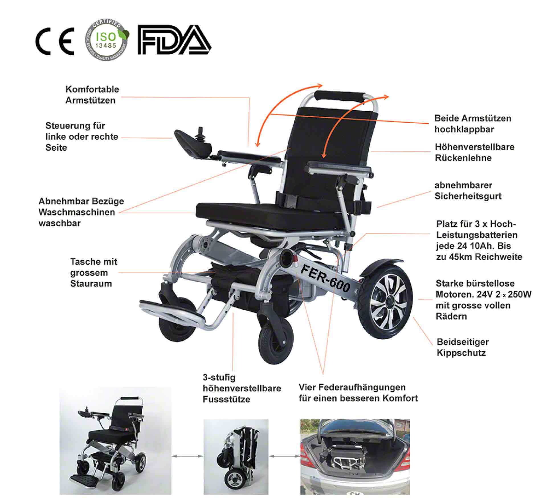 Der FER-600 ist das am weitesten fortgeschrittene, leichtest faltbare und günstigste Elektrorollstuhl-Modell, welches sich derzeit auf dem Markt befindet!